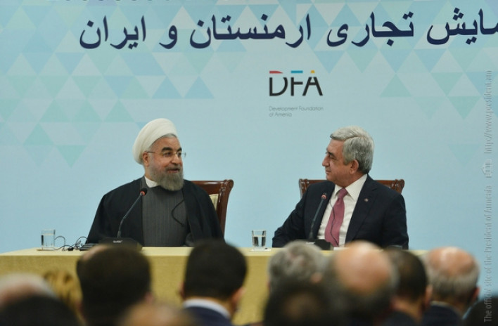 Նախագահ Սերժ Սարգսյանը և Իրանի Իսլամական Հանրապետության Նախագահ Հասան Ռոհանին այսօր Երևանի «Ռեդիսոն Բլյու» հյուրանոցային համալիրում ներկա են գտնվել Հայաստան-Իրան գործարար համաժողովի փակման արարողությանը: