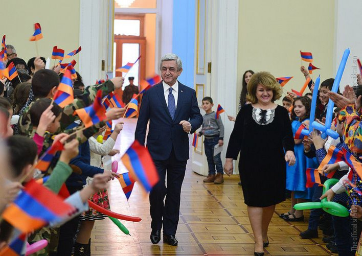 Նախագահ Սերժ Սարգսյանը և տիկին Ռիտա Սարգսյանը Նախագահի նստավայրում Ամանորի և Սուրբ Ծննդյան տոների կապակցությամբ այսօր հյուրընկալել են ՀՀ ԶՈՒ զինծառայողների, Արցախյան ազատամարտում, ինչպես նաև ապրիլյան քառօրյա պատերազմում զոհված, հաշմանդամ դարձած զինվորների, Երկրապահ կամավորական միության, ՀՀ ոստիկանության և ազգային անվտանգության ծառայության աշխատակիցների, ՀՀ պաշտպանության նախարարության հետ համագործակցող մի շարք հասարակական կազմակերպությունների անդամների ընտանիքների երեխաների և թոռնիկների, այդ թվում՝ Լեռնային Ղարաբաղի Հանրապետությունից: