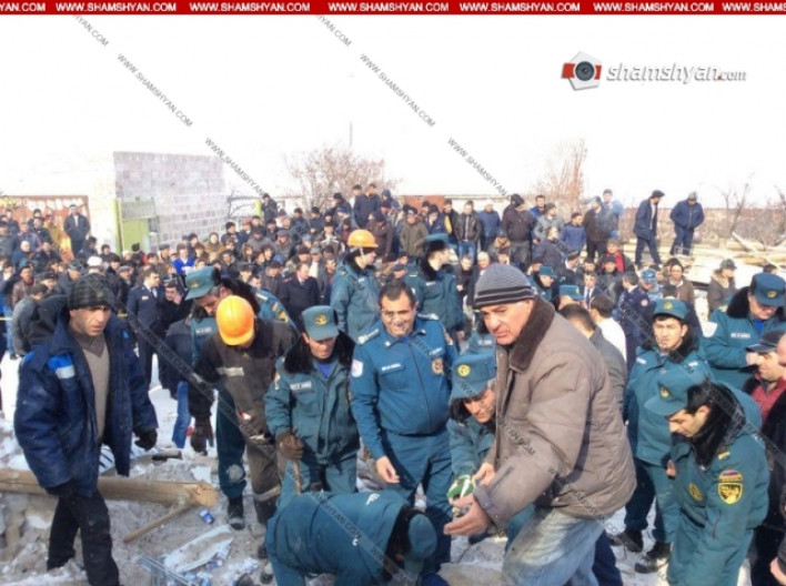 Ժամը 12.03-ի դրությամբ ավտոկռունկի օգնությամբ փլատակներից դուրս է բերվել երկու կնոջ (մոտ 32 և 50 տարեկան) դի: