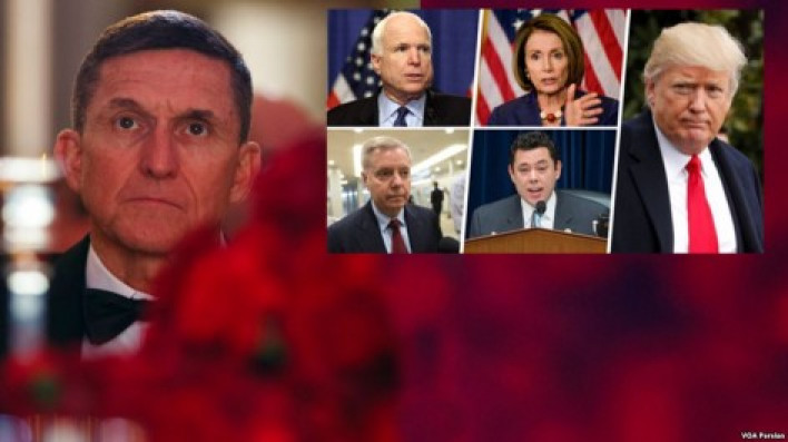 Ամերիկայի Ձայն Իր հրաժարականի մասին նամակում ԱՄՆ-ի ազգային անվտանգության խորհրդական Մայքլ Ֆլինը նշել է, որ նախագահ Թրամփի կողմից իշխանության ստանձնումից մեկ շաբաթ առաջ ինքը պատահաբար թերի տեղեկատվություն է տրամադրել փոխնախագահ Մայք Փենսին՝ ԱՄՆ-ում Ռուսաստանի դեսպանի հետ իր ունեցած հեռախոսազրույցի մասին։: Նա հայցել է նախագահ Թրամփի ու փոխնախագահ Փենսի ներողամտությունը սույն առիթով: Սա աննախադեպ երևույթ է ամերիկյան քաղաքական պատմության մեջ, երբ նման բարձրաստիճան պաշտոնյան հրաժարական է ներկայացնում նախագահի իշխանության ստանձնումից մեկ ամիս հետո: Նախագահ Թրամփն արագ նշանակեց մեկ այլ պաշտոնաթող գեներալ Քեյֆ Քելոգին որպես պաշտոնակատար, սակայն շրջանառվում են նաև Կենտրոնական հետախուզական վարչության նախկին տնօրեն Դեյվիդ Պետրեուսի ու ռազմածովային փոխծովակալ Ռոբերտ Հարվարդի անունները: Մամուլի հաղորդումների համաձայն, Ֆլինն ու Ռուսաստանի դեսպան Սերգեյ Կիսլյակը քննարկել են նախկին նախագահ Բարաք Օբամայի կիրառած պատժամիջոցները Ռուսաստանի դեմ՝ ի պատասխան Մոսկվայի ներգրավվածությանն ամերիկյան ընտրություններում հօգուտ Դոնալդ Թրամփի: Փենսի ու Թրամփի օգնականները, հենվելով Ֆլինի տրամադրած տեղեկատվության վրա, հերքել են, որ վերջինս քննարկել է պատժամիջոցների վերացումը Թրամփի իշխանության ստանձնումից հետո: Հետագայում Ֆլինը ասել է, որ այս հարցը կարող է առաջ գալ: Ֆլինի և Կիսլյակի հեռախոսազրույցն օրենքի խախտում է, քանի որ մասնավոր քաղաքացիներն իրավունք չունեն քննարկելու դիվանագիտական գործունեության հետ կապված հարցեր օտարերկրյա ներկայացուցիչների հետ: Հեռախոսազրույցի պահին նախագահ Թրամփը դեռևս չէր ստանձնել իշխանությունը: Կրեմլի խոսնակ Դմիտրի Պեսկովն իր հերթին հայտարարել է, որ Ֆլինի հրաժարականը Վաշինգտոնի ներքին գործն է և ոչ Մոսկվայինը։Սակայն ռուս օրենսդիրներն ընդգծել են, որ այս հրաժարականը փորձ է վնասելու Մոսկվայի ու Վաշինգտոնի միջև հարաբերությունների բարելավումը, և սա բացասական ազդանշան է: «Անգամ Ռուսաստանի հետ երկխոսություն ունենալու պատրաստակամությունը Վաշինգտոնի կոշտ քաղաքականության կողմնակիցների կողմից դիտարկվում է որպես հանցագործություն: Սա ոչ միայն պարանոյա է, այլ մի բան էլ ավելին»,- ասել է Ռուսաստանի Պետդումայի արտաքին հարաբերությունների հանձնաժողովի նախագահ Կոնստանտին Կոսաչյովը: Դեմոկրատ սենատորներից ոմանք կոչ են արել հետաքննություն սկսել այս փաստի առիթով, սակայն այլ սենատորներ կոչ են արել նախագահ Թրամփին հեռացնել Ֆլինին պաշտոնից: