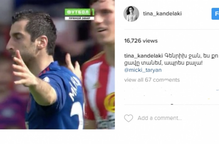 Ռուսաստանցի հայտնի լրագրող և հեռուսահաղորդավար Թինա Կանդելակին Instagram-ի իր էջում հայատառ գրառում է կատարել Հայաստանի ազգային հավաքականի և անգլիական «Մանչեսթեր Յունայթեդի» կիսապաշտպան Հենրիխ Մխիթարյանի մասին: