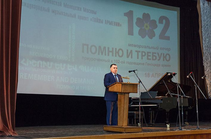 «Դիալոգ» կազմակերպության նախաձեռնությամբ Մոսկվայում, Գրողների տան մեծ դահլիճում տեղի է ունեցել «Հիշում եմ և պահանջում» ոգեկոչման երեկոն, որը նվիրված է եղել Հայոց ցեղասպանության 102–րդ տարելիցին: Միջոցառումը իրականացվել է Մոսկվայի հայ երիտասարդության ընկերակցության և «Հայաստանի գաղտնիքները» միջազգային երաժշտական ծրագրի հետ համագործակցությամբ, տըեղեկացնում է կազմակերպությունը: