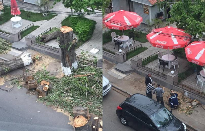 Ֆեյսբուքյան օգտատեր Գոհար Աբաջյանն իր էջում հրապարակել է Երեւանում հատված ծառերի լուսանկարներ ու գրել. ««Արաբկիր կանաչապատում»-ը Արաբկիր թաղապետարանի հարեւանությամբ 2 օրում ահա այսպես «կանաչապատեց» տարածքը` սրճարանի զոնտիկների համար»: