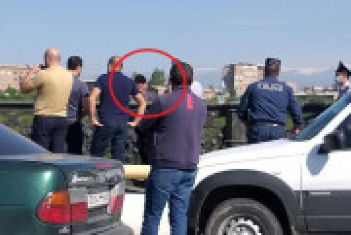 Այս պահին մի տղամարդ փորձում է նետվի Կիևյան կամրջից