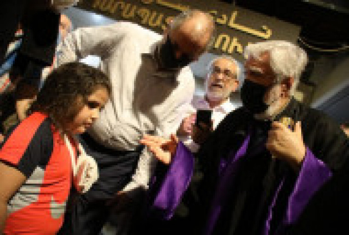 Նորին Սրբությունը Բուրջ Համմուտի քաղաքապետի եւ պատասխանատու մարմինների ներկայացուցիչների հետ շրջել է հայահոծ թաղամասերում, հանդիպում ունեցել վիրավոր հայորդիների հետ, օրհնել նրանց, բարի ապաքինում մաղթել և տեղում ծանոթացել տիրող կացությանը:
