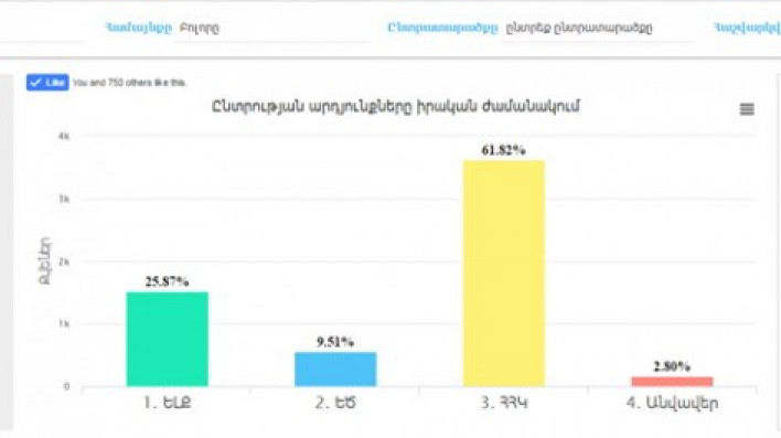 «Ելք» դաշինքն առաջարկում է՝ Երևանի ավագանու ընտրությունների ձայների հաշվարկին հետեւել http://real-elections.com/ կայքում: «Ելք» դաշինքի ներկայացուցիչներն այս պահին գտնվում են տեղամասերում և իրական ժամանակի պայմաններում ներկայացնում են հաշվարկը: