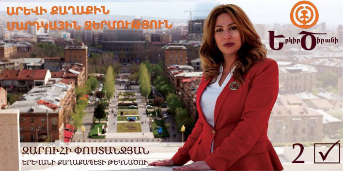 Երեւանի ավագանու ընտրությունների նախնական արդյունքների համաձայն, ՀՀԿ-ն կստանա Երեւանի ավագանու 65 մանդատներից 46-ը: ,Ելք. Դաշինքը» կստանա 14 մանդատ, իսկ «Երկիր Ծիրանի» կուսակցությունը՝ 5 մանդատ: «Երկիր Ծիրանի» կուսակցություն 1. Փոստանջյան Զարուհի 2.Պարակշիեւ Մնացական 3. Աղեկյան Սոնա 4. Պետրոսյան Հայկ 5. Խաչատրյան Մարինա