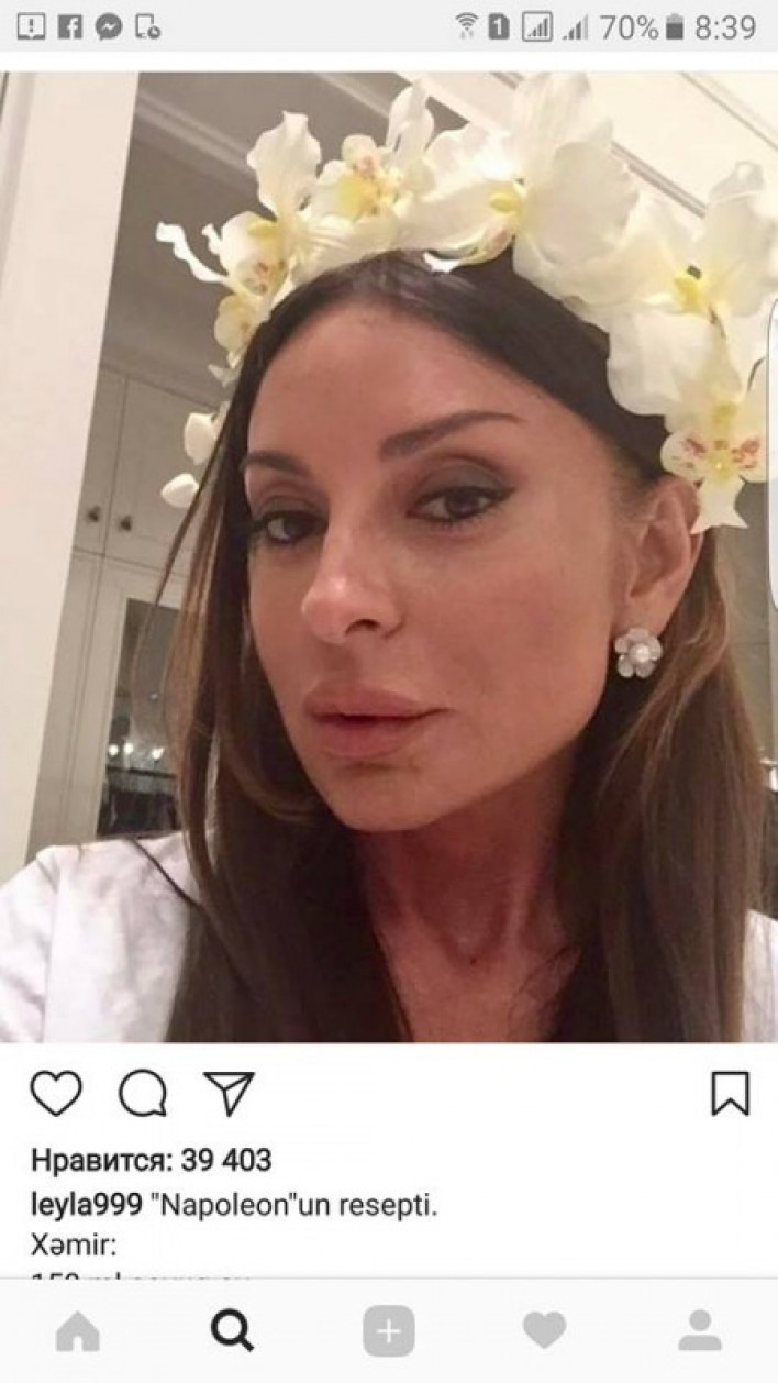 «instagram»-ի ադրբեջանական տիրույթի գլխավոր «լուրը» Ադրբեջանի բռնապետի տեղակալ՝ բռնապետուհի Մեհրիբանն է իր ծաղկազարդ սելֆիով: 53-ամյա Մեհրիբան տատին հանրությանը ներկայանում է հրեշտակային կերպարով՝ գլխին խոլորձախառը դափնիով: Այս լուսանկարը իր էջում է տեղադրել նաև Մեհրիբանի «Հեյդար Ալիև» հիմնադրամի նախագահ Մեհրիբան Ալիևայի տեղակալը՝ համատեղությամբ նաև դուստրը՝ Լեյլա Ալիևան: