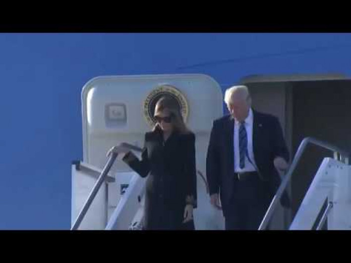 Թրամփը մեկնում է ձեռքը կնոջը օդանավից իջնելուց առաջ, սակայն նա արհամարհում է այդ ժեստն ու սկսում ուղղել մազերը։