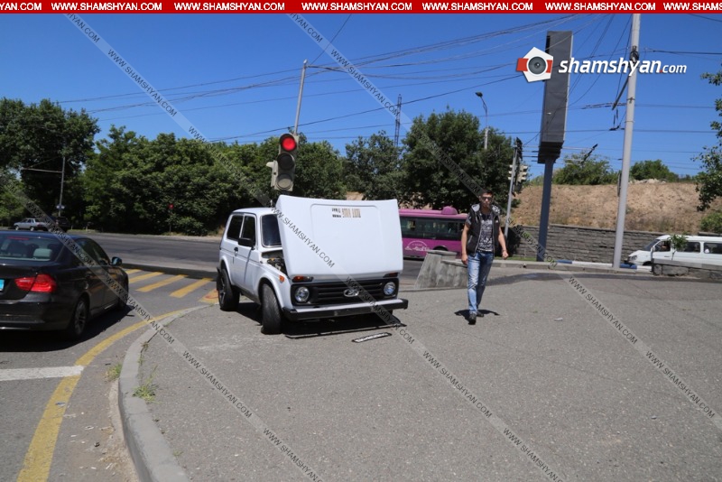 ԱՄՆ դեսպանատան դիմաց բախվել են Opel-ն ու Нива-ն, Нива-ն էլ հայտնվել է մայթին