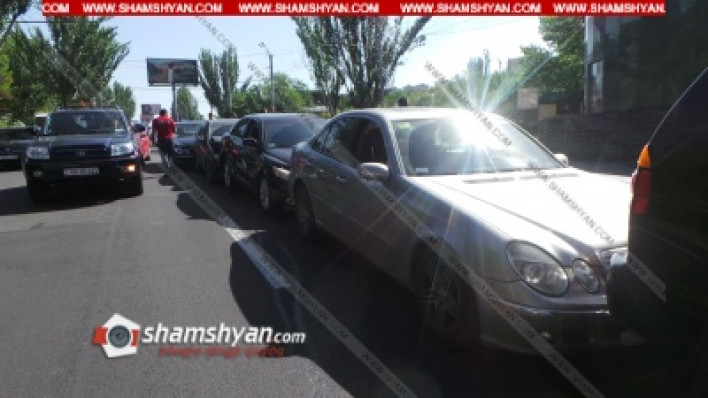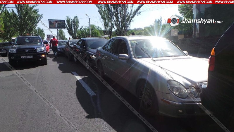 Այսօր՝ հունիսի 7-ին, շղթայական ավտովթար է տեղի ունեցել Երևանում։ Ժամը 09։10-ի սահմաններում Մյասնիկյան պողոտայում բախվել են Mercedes մակնիշի 17 QG 007 համարանիշի, Mercedes մակնիշի 34 NN 132 համարանիշի, Toyota Camry մակնիշի 33 NN 337 համարանիշի, Mercedes E320 320 մակնիշի 63 TT 444 համարանիշի և Mitsubishi մակնիշի 08 ԼՕ 472 համարանիշի ավտոմեքենաները։ Ինչպես դեպքի վայրից հայտնում է ֆոտոլրագրող Գագիկ Շամշյանը, վթարի հետևանքով, բարեբախտաբար, զոհեր և վիրավորներ չկան։ Օպերատիվորեն ժամանել է «Ռոսգոստրախ» ապահովագրական ընկերության ներկայացուցիչը։ Ծանուցում. Ենթադրյալ հանցանքի մեջ կասկածվողը կամ մեղադրվողը համարվում է անմեղ, քանի դեռ նրա մեղավորությունն ապացուցված չէ ՀՀ քրեական դատավարության օրենսգրքով սահմանված կարգով` դատարանի` օրինական ուժի մեջ մտած դատավճռով: Լուսանկարները և տեսանյութը՝ Գագիկ Շամշյանի