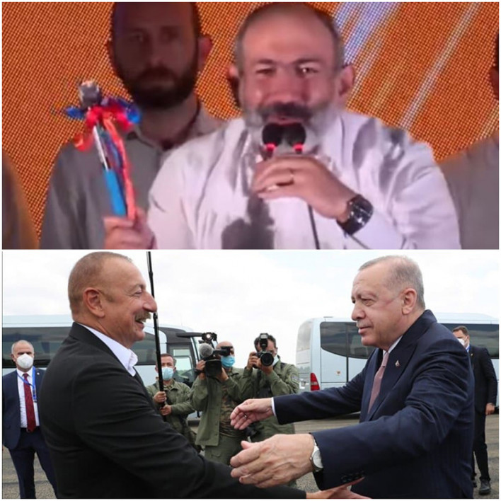 Բայց ոչ՝ Փաշինյանի դեպքում: Չաքուճն առած՝ ուրախ-զվարթ դուրս է գալիս Փաշինյանը, կատակում, ելույթ ունենում: Երեկ օրինակ... Իսկ մի քանի կիլոմետր այն կողմ երեկ Էրդողանն ու Ալիևը պարում էին Շուշիում: