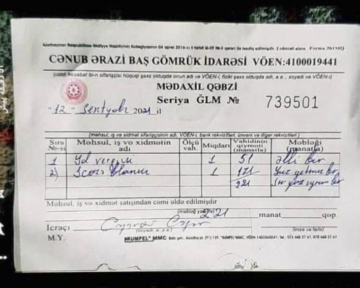Ադրբեջանցիները բեռները ստուգելուց հետո ստացական են հանձնում իրանցի վարորդներին