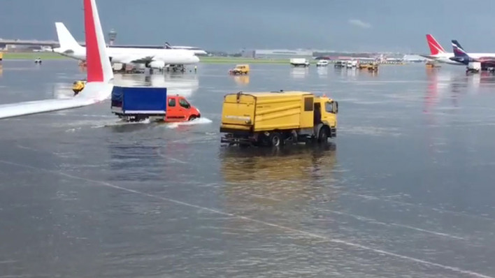 «Շերեմետևո» օդանավակայանի թռիչքուղին հեղեղվել է (տեսանյութ)