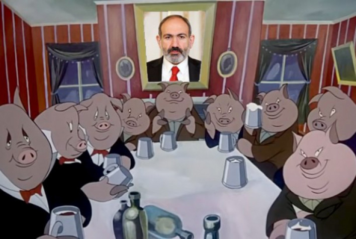 Նիկոլը պատից կախվել է նաև այլ պատճառով։ Ինքը շարժվում է հեղափոխության կանոններով։ Այն կանոններով, որոնք նկարագրված են Ջորջ Օրուելի «Անասնաֆերմայում»։ Այնտեղ էլ խոզերը իշխանափոխություն արեցին, պատից նետեցին ֆերմայի հարբեցող տիրոջ նկարը, սահմանեցին ֆերմայի արդարության սկզբունքները, բայց շատ չանցած իրենք դարձան ավելի հարբեցող ու ավելի վատ։ Սկզբունքներն էլ խմբագրվեցին։