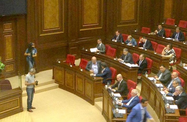 Ազգային ժողովում արտահերթ նիստի մեկնարկից առաջ ՀՀԿ-ական պատգամավոր, գեներալ-լեյտենանտ Սեյրան Սարոյանը մոտեցավ վարչապետ Կարեն Կարապետյանին և մի քանի րոպե ինչ-որ հարց էր քննարկում նրա հետ: Հիշեցնենք,որ ԱԺ-ում այսօր երկրորդ ընթերցմամբ քննարկվում է Սևանից հավելյալ 100 մլն խմ ջրառի հարցը: