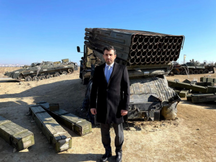 «Եղանք Ռազմական ավարի պուրակում, որտեղ ցուցադրված են Ղարաբաղյան պատերազմի ժամանակ վերցված ռազմական մեքենաները», - գրել է նա Twitter-ի իր էջում։