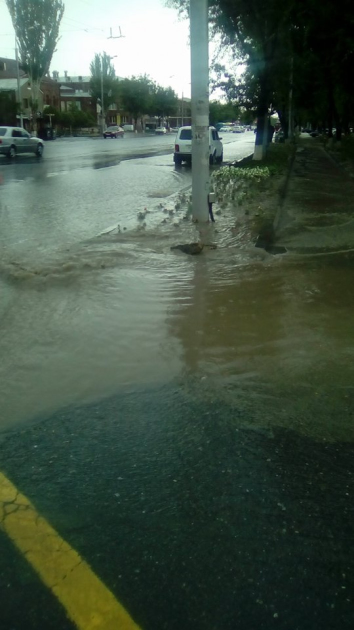 Երեկ հորդառատ անձրեւ է տեղացել նաեւ Էրեբունի վարչական շրջանում։ hraparak.am-ի թղթակիցը հայտնում է, որ անձրեւն այնքան ուժեղ է եղել, որ մայթեզրերը ծածկվել են ջրով, իսկ փողոցներով հնարավոր չէ ոտքով անցնել։ Անցորդները թաքնվել էին մոտակա կառույցների տակ, իսկ վարորդները մեքենաները կանգնեցնում էին ապահով վայրերում՝ կարկուտի հարվածներից հեռու պահելու համար։