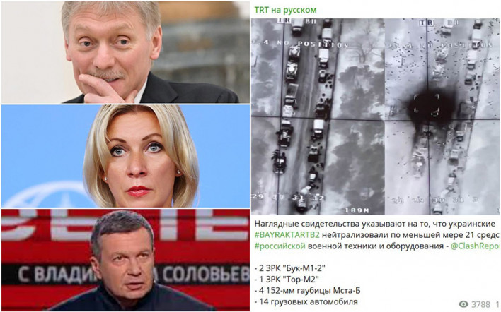 Կրեմլի խոսնակ Պեսկովն ու ԱԳՆ ներկայացուցիչ Զախարովան նման «տրամաչափի» փաստերով չեն զբաղվում: Լուռ է նաև ռուսական քարոզչամեքենան: Իսկ այն «մեդիագիգանտները», որոնք Երևանում Ռուսաստանի դեսպանատան առջև Տիգրան Խզմալյանի կազմակերպած 10 հոգանոց բողոքի ցույցի լուսանկարները պտտում են ռուսական տելեգրամյան ալիքներում, քննարկում իրենց թոք-շոուների ընթացքում ու ստորացում Հայաստան պետությունը՝ այսօր չեն նկատում, թե ինչպես է Թուրքիան զինում Ուկրաինային՝ «Բայրաքթարներով» ու չեն տեսնում թուրքական պետական TRT- լրատվականի տեսահոլովակները, որոնցում ցույց են տալիս, թե ինչպես են թուրքական «Բայրաքթարները» ոչնչացնում Ռուսաստանի ԶՈՒ-երին պատկանող զինտեխնիկան: