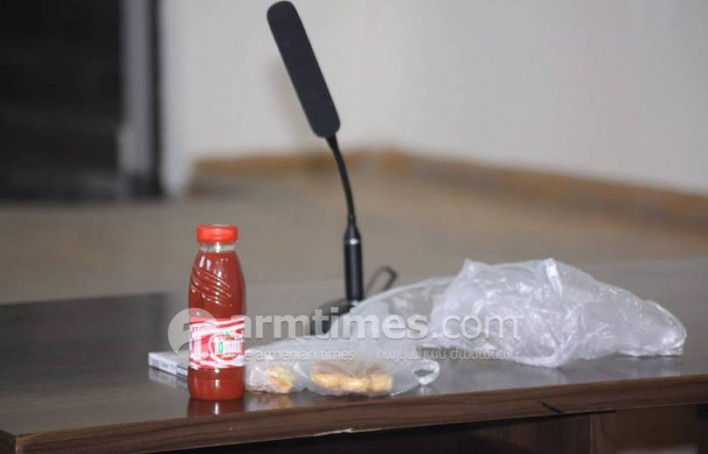armtimes.com-ը հայտնում է. Էրեբունի եւ Նուբարաշեն վարչական շրջանների ընդհանուր իրավասության դատարանում «Սասնա ծռեր» խմբի գործով տեղի ունեցած արտագնա նիստից հետո Պավել Մանուկյանի ու նրա պաշտպան Հարություն Բաղդասարյանի սեղանի տակից հյութ և բուլկի են հայտնաբերել: Կարգադրիչները համապատասխան արձանագրություն են կազմել: