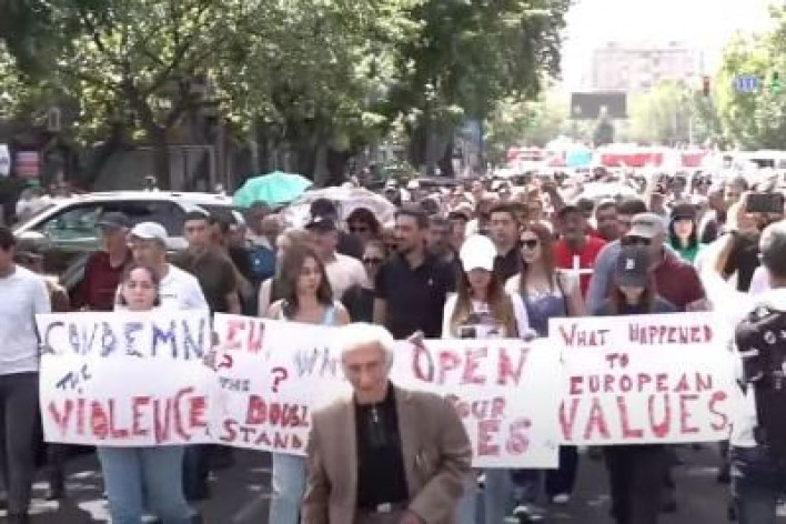 «Հրապարաակ» թերթը գրում է. «Երեկ ընդդիմադիրները երթով հասան Հայաստանում ԵՄ գրասենյակի մոտ։