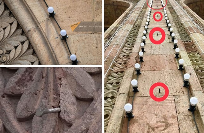 Իսկ մշակույթի նախկին փոխնախարար, ճարտարապետ Տիգրան Գալստյանն էլ 168.am–ի հետ զրույցում նշել էր, որ լույսերը հանելուց հետո հնարավոր չի լինի այդ անցքերն այնպես վերականգնել, որ տեսանելի չլինի ու շենքի տեսքը չաղավաղվի։