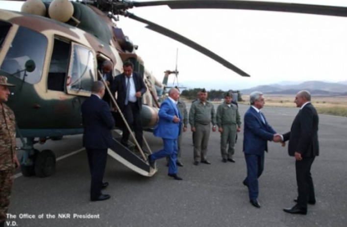 Արցախի Հանրապետության Նախագահ Բակո Սահակյանն օգոստոսի 30-ին Ստեփանակերտի օդանավակայանում դիմավորել է ԼՂՀ հռչակման 26-րդ տարեդարձին նվիրված տոնական ﬕջոցառուﬓերի շրջանակներում Արցախ ժամանած Հայաստանի Հանրապետության Նախագահ Սերժ Սարգսյանին: Այս մասին տեղեկացրին Արցախի Հանրապետության Նախագահի աշխատակազﬕ տեղեկատվության գլխավոր վարչությունից