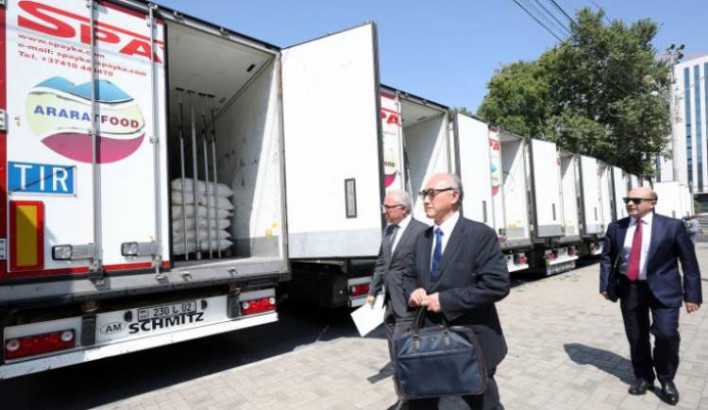 Աշխատանքային խմբի կազմում են առողջապահության, սոցապ, ֆինանսների, տարածքային կառավարման եւ կրթության նախարարները, վարչապետի խորհրդական Արտաշես Թումանյանը, հատուկ հանձնարարություններով դեսպան Էդմոն Մարուքյանը եւ ուրիշներ: Խումբն արձանագրել է, որ Արցախի բլոկադան «հանգեցրել է աղետալի հետեւանքների», ուստի առավոտյան երկու տասնյակ բեռնատարներ արդեն ԱԳՆ շենքի հարակից հրապարակում էին՝ «Մարդասիրական օգնություն` Լեռնային Ղարաբաղին, սնունդ` կյանքի համար» գրություններով: Ասվեց, որ Երեւանից 400 տոննա հումանիտար օգնություն է շարժվում դեպի Արցախ, եւ Կոռնիձորից բեռը` ռուս խաղաղապահների միջոցով, կփոխանցվի արդեն 227 օր շրջափակման մեջ գտնվող արցախցիներին։ Մինչ բեռնատարները կշարժվեին, ուղեբեռը «զննության» էին ենթարկել ՀՀ ԱԳՆ` խորհրդակցության ժամանած բոլոր դեսպանները: Նրանք սեփական աչքով համոզվել էին, որ Արցախ տեղափոխվող բեռն առաջին անհրաժեշտության ապրանքներ են եւ դեղորայք։ Ի դեպ, ՀՀ-ում ՌԴ դեսպանությունը երեկվա քննարկմանը ներկայացված էր փոխդեսպանի մակարդակով։