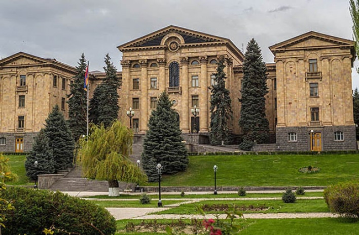 Խաչքարի, գերեզմանաքարի և հուշարձանի կողքին՝ բացօթյա սրճարան Ազգային ժողովի բակում