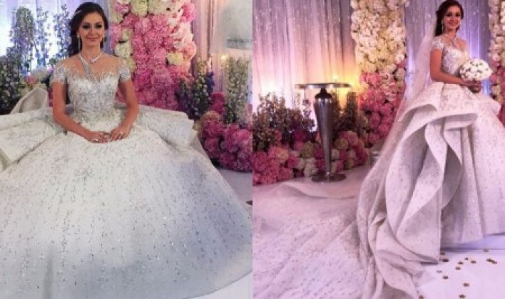 Քննարկվող թեմաներից մեկն էլ հարսանեկան զգեստն է, որը լիբանանյան Zuhair Murad բրենդից է: Հարսանեկան հագուստների միջին արժեքը 20-50 հազար դոլար է: Զգեստը կշռում էր 7 կգ: