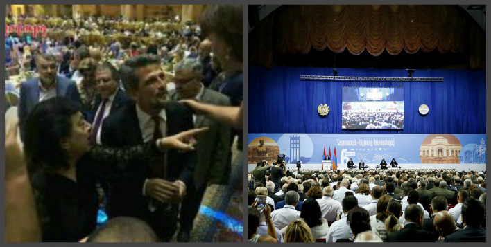 Հայաստան-Սփյուռք համաժողովին ընդառաջ երեկ պատվիրակների համար ընդունելություն է կազմակերպվել Սփյուռքի նախարար Հրանուշ Հակոբյանը «Փարավոն» ռեստորանային համալիրում։ Մեր տեղեկություններով հավաքը նախատեսված է եղել 800 հոգու համար: Հրավիրատոմսերում նշված չի եղել մեկ անձի համար , և շատ սփյուռքահայեր օգտվելով առիթից գնացել են խմբերով,ինչի արդյունքում հյուրերի մեծ մասը հայտնվել է դրսերում։