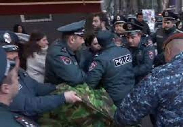 Ոստիկանների մեծ խմբով, ոստիկանական տասնյակ մեքենաներով ուղեկցում են քաղաքում երթ անող մի քանի տասնյակ երիտասարդներին եւ հարմար պահ որսալով` բերման ենթարկում ոստիկանություն»: