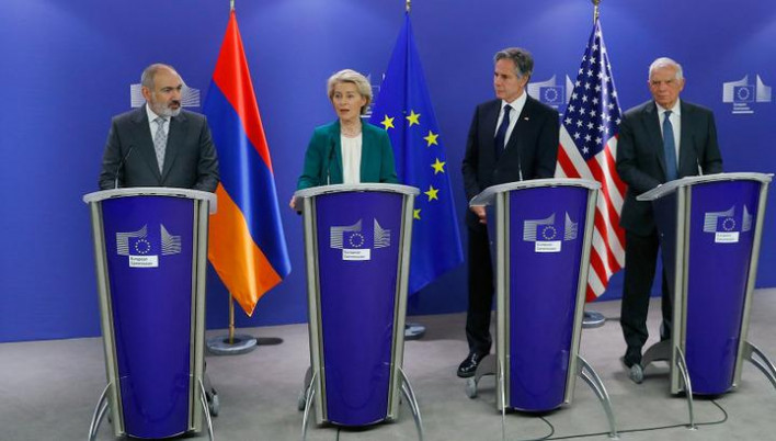 Ապրիլի 5-ին Բրյուսելում Փաշինյանի, Ուրսուլա ֆոն դեր Լայենի ու Էնթոնի Բլինքենի հանդիպումը ինչ-որ չափով պարզ դարձրեց նաև Արևմուտքի գործելակերպը։ Հանդիպումից առաջ այնպիսի սպասումներ էին ստեղծվել, թե Արևմուտքը փորձելու է ահռելի գումարներ ներդնել Հայաստանում ու որոշակի անվտանգության երաշխիքներ ստեղծել։ Բայց հանդիպման արդյունքում խոսվեց ընդամենը մի քանի տասնակ միլիոն դոլարի աջակցության մասին, իսկ Հայաստանի համար անվտանգության երաշխիքների մասին ոչինչ չնշվեց։ Ավելին, հանդիպումից որոշ ժամանակ անց ԵՄ արտաքին հարաբերությունների խոսնակ Պետեր Ստանոն հայտարարեց՝ Ադրբեջանն ու Հայաստանը պետք է իրենք լուծումը գտնեն՝ ոչ ոք չի կարող խնդիրը լուծել ձեր փոխարեն, ոչ ոք չի կարող ձեզ լուծումներ պարտադրել։