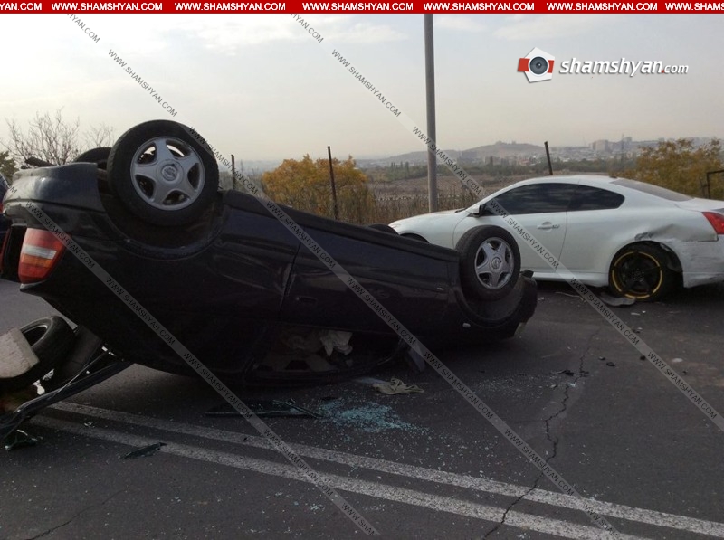 Խոշոր ավտովթար Երևանում. բախվել են Opel-ն ու Infiniti-ն, Opel-ը գլխիվայր շրջվել է. ՖՈՏՈՌԵՊՈՐՏԱԺ