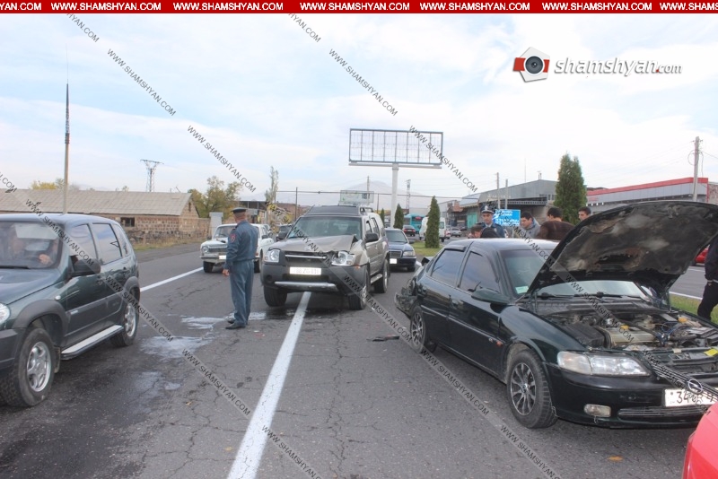 Այսօր՝ հոկտեմբերի 30-ին, շղթայական ավտովթար է տեղի ունեցել Կոտայքի մարզում: Ժամը 08:30-ի սահմաններում Երևան-Սևան ավտոճանապարհի 10-րդ կմ հատվածում՝ Աբովյանի ՃՈ անշարժ պահակակետի մոտ, բախվել են Mercedes մակնիշի 25 QC 025 համարանիշի, Mercedes մակնիշի 34 QR 946 համարանիշի, Nissan մակնիշի 88 ZG 818 համարանիշի, Opel մակնիշի 34 UR 973 համարանաիշի և Oepl մակնիշի 35 ML 637 համարանիշի ավտոմեքենաները: Ինչպես հայտնում է ֆոտոլրագրող Գագիկ Շամշյանը, վթարի հետևանքով, ըստ նախնական տեղեկությունների, բարեբախտաբար զոհեր և վիրավորներ չկան: Դեպքի վայր են ժամանել Ճանապարհային ոստիկանության 2-րդ սպայական գումարտակի 3-րդ վաշտի 1-ին դասակի աշխատակիցները՝ դասակի հրամանատար Հրանտ Գալստյանի գլխավորությամբ: Փաստի առթիվ նույն վաշտի հետաքննիչ Ավետիս Ավետիսյանի կողմից նյութեր են նախապատրաստվում: Ոստիկանությունն ու հետաքննչական բաժանմունքը պարզում են վարորդների ինքնությունը: Ծանուցում. Ենթադրյալ հանցանքի մեջ կասկածվողը կամ մեղադրվողը համարվում է անմեղ, քանի դեռ նրա մեղավորությունն ապացուցված չէ ՀՀ քրեական դատավարության օրենսգրքով սահմանված կարգով` դատարանի` օրինական ուժի մեջ մտած դատավճռով: Լուսանկարները՝ Սմբատ Պետրոսյանի
