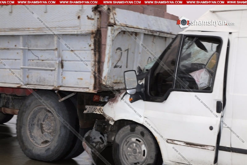 Երևան-Գյումրի ճանապարհին բախվել են Ford Transit-ն ու քարով բարձված ЗИЛ-ը. կան վիրավորներ. ՖՈՏՈՌԵՊՈՐՏԱԺ