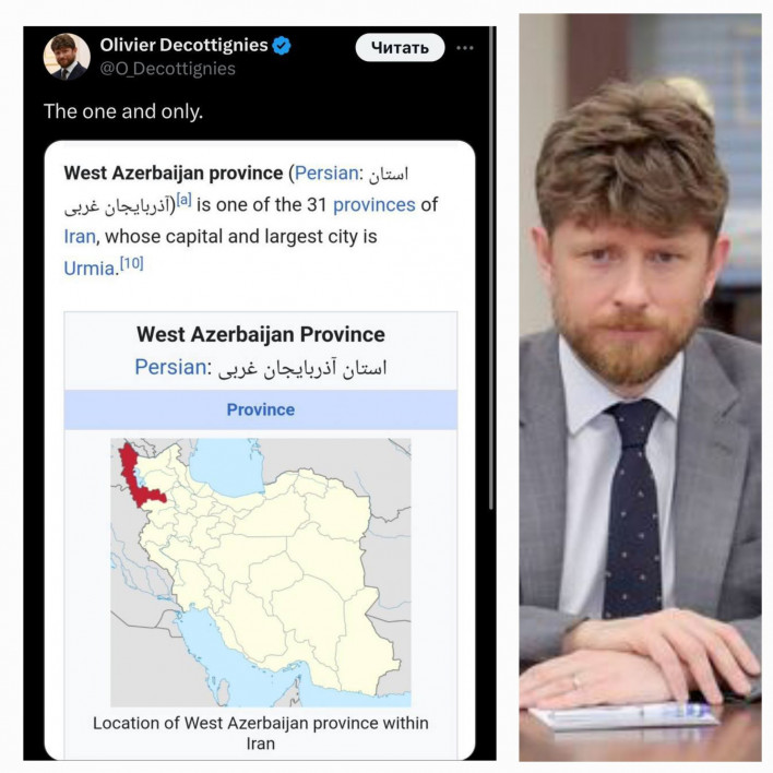 Հայաստանում Ֆրանսիայի դեսպան ՕլիվիեԴըկոտինյին Х-ի իր միկրոբլոգում տեղադրել է Իրանի Արևմտյան Ատրպատական (Ադրբեջան) նահանգի քարտեզը և գրել." Միակն ու անկրկնելին"... Հետաքրքիր է, որ շատերն այն մեկնաբանում են այն տեսանկյունից, որ սա Ֆրանսիայի դեսպանի պատասխանն է Բաքվի հնարած Արևմտյան Ադրբեջանին, որն, ըստ Ալիևի, իր մեջ է ընդգրկում ներկայիս ողջ Հայաստանը... Իրականում Հայաստանում Ֆրանսիայի դեդպանն իր այս գրառումով, նախ` ապացուցեց, որ ինքը ավելի լավ հայ է, քան թուրքի դեմ ծնկած վախկոտ Նիկոլն ու իր քայլիստ դավաճանները, որոնք ծպտուն չեն հանում Բաքվից հնչող հակահայ զառանցանքներին և երկրորդը` այս քարտեզի տեղադրումով, ենթադրում եմ, Դըկոտինյին նաև պատասխանեց Նիկոլի երեկվա անասունությանը, ով Հ1֊ով Արևմտյան Հայաստանի և Ալիևի հնարած Արևմտյան Ադրբեջանի միջև համեմատություն տարավ և ադրբեջսնամետ զառանցանքներ արտաբերեց... Դըկոտինյին, փաստորեն, իր գրառումով Նիկոլին հասկացնում է, որ իրական Արևմտյան Ատրպատական֊Ադրբեջանը Իրանում է և իր համեմատությունները տգտիտեւթյան հերթական դրսևորումն է...