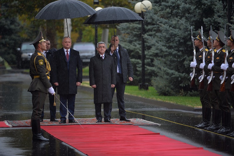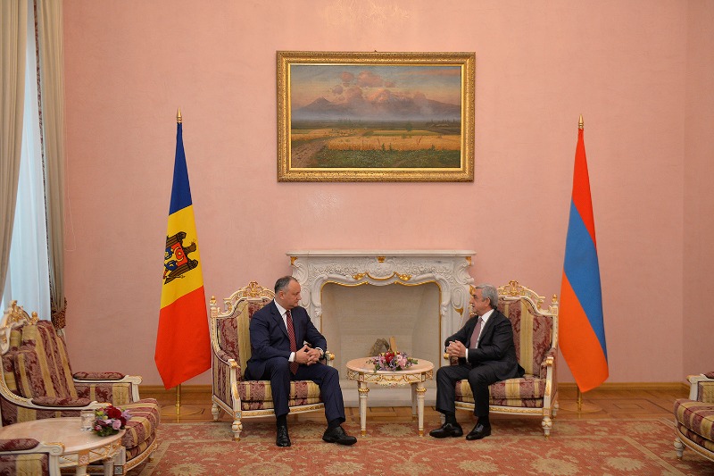 Նախագահի նստավայրում այսօր տեղի է ունեցել պաշտոնական այցով Հայաստան ժամանած Մոլդովայի նախագահ Իգոր Դոդոնի հրաժեշտի պաշտոնական արարողությունը: Մինչ այդ տեղի ունեցած առանձնազրույցի ընթացքում երկու երկրների ղեկավարները բարձր են գնահատել այցի շրջանակներում կայացած բանակցությունների արդյունքները, որոնք, կողմերի համոզմամբ, նոր ազդակ կհաղորդեն հայ-մոլդովական բարեկամական հարաբերությունների զարգացմանն ու փոխադարձ հետաքրքրություն ներկայացնող ոլորտներում համագործակցության խորացմանը: