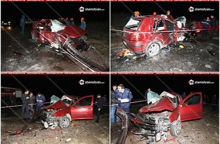 ԱԻՆ հաղորդմամբ՝ Աշտարակ-Գյումրի ավտոճանապարհի 20-րդ կմ-ին բախվել են «Volkswagen Golf» մակնիշի 34 MG 375 (վարորդ՝ 1968 թ. ծնված Ա. Ա.) և «Volkswagen Jetta» մակնիշի 20 SS 360 (վարորդ՝ 1979 թ. ծնված Ա. Մ.) պետհամարանիշերով ավտոմեքենաները, ինչի հետևանքով «Volkswagen Golf» մակնիշի ավտոմեքենայի ուղևոր` 1956 թ. ծնված Ա. Ա.-ը և «Volkswagen Jetta» մակնիշի ավտոմեքենայի ուղևոր` 1947 թ. ծնված Ա. Ջ.-ը մահացել են, իսկ Ա. Ա.-ը տեղափոխվել է Արմենիա ՀԲԿ, իսկ «Volkswagen Jetta» մակնիշի ավտոմեքենայի վարորդ Ա. Մ.-ը և ուղևոր՝ 1980 թ. ծնված Կ. Գ.-ը հոսպիտալացվել են Աշտարակ քաղաքի ԲԿ, որտեղ բժիշկները տուժածների առողջական վիճակը գնահատել են բավարար: