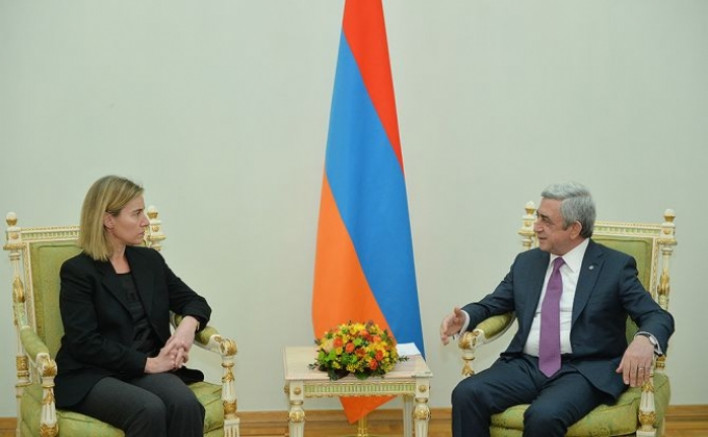 Հանրապետության Նախագահը, կարևորելով ԵՄ հետ Հայաստանի հարաբերությունների խորացումը, որում, ըստ նրա, մեր երկիրը մեծապես շահագրգռված է, նշել է, որ բարձրաստիճան փոխայցելություններն այդ առումով լավ խթան են հանդիսանում և վկայում են փոխգործակցության զարգացման երկկողմ պատրաստակամության մասին: ՀՀ Նախագահի աշխատակազմի հասարակայնության և տեղեկատվության միջոցների հետ կապերի վարչության հաղորդմամբ` ՀՀ Նախագահը և ԵՄ բարձր ներկայացուցիչը համակարծիք են եղել, որ 2015թ. մայիսին Ռիգայում կայացած Արևելյան գործընկերության 4-րդ գագաթնաժողովը կարևոր հանգրվան էր ՀՀ-ԵՄ հարաբերություններում, որի վրա հիմնվելով կողմերը շարունակում են համագործակցությունը։ Նրանք կարևոր են համարել, որ այդ առումով Ռիգայում վերահաստատվեց Հայաստանի և ԵՄ միջև առկա ընդհանուր ըմբռնումն ապագա համաձայնագրի շրջանակի վերաբերյալ` ուղղված փոխադարձ հետաքրքրություն ներկայացնող բոլոր ոլորտներում համապարփակ համագործակցության հետագա զարգացմանը և ամրապնդմանը: ՀՀ Նախագահ Սերժ Սարգսյանը մարտի 1-ին ընդունել է Եվրոպական միության արտաքին քաղաքականության և անվտանգության հարցերով բարձր ներկայացուցիչ, Եվրոպական հանձնաժողովի փոխնախագահ Ֆեդերիկա Մոգերինիին և նրա գլխավորած պատվիրակությանը:Սերժ Սարգսյանը գոհունակությամբ է նշել Ֆեդերիկա Մոգերինիի մասնակցությամբ տարեվերջին Բրյուսելում տրված Հայաստան-Եվրամիություն նոր համապարփակ իրավական փաստաթղթի շուրջ բանակցությունների մեկնարկի մասին և հույս հայտնել, որ դրանք կշարունակվեն բնականոն հունով, ու տեսանելի ապագայում կողմերը հաջողությամբ ավարտին կհասցնեն այս կարևոր գործընթացը: Նախագահ Սերժ Սարգսյանն անդրադարձել է Հայաստանում իրականացվող լայնածավալ բարեփոխումներին, այդ թվում՝ անցած տարվա դեկտեմբերին կայացած սահմանադրական բարեփոխումներին: Նախագահն ընդգծել է, որ մեր երկիրը հաստատակամ է շարունակելու տարբեր ոլորտներում սկսված բարեփոխումները և բարձր է գնահատում դրանց իրականացման համար ԵՄ կողմից հատկացվող ֆինանսական փորձագիտական աջակցությունը: Հանդիպմանն անդրադարձ է եղել նաև ԵԱՀԿ Մինսկի խմբի շրջանակներում ԼՂ հիմնախնդրի լուծման բանակցային գործընթացին: Հանրապետության Նախագահը հյուրին ներկայացրել է այդ գործընթացում հայկական կողմի դիրքորոշումները, որոնք տարբեր առիթներով բազմիցս հրապարակվել են: Ֆեդերիկա Մոգերինին վերահաստատել է այս խնդրում Եվրամիության դիրքորոշումը, ընդգծելով, որ ԵՄ-ն սատարում է ԵԱՀԿ Մինսկի խմբին՝ նրա առաքելության իրականացման գործում և պաշտպանում է բանակցությունների հիմքում ընկած երեք սկզբունքները՝ ժողովուրդների ինքնորոշման իրավունքի, ուժի կամ ուժի սպառնալիքի չկիրառման և տարածքային ամբողջականության սկզբունքները: