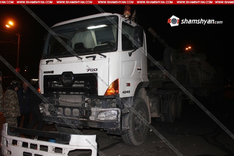 Երեկ՝ դեկտեմբերի 13-ին, խոշոր ավտովթար է տեղի ունեցել Երևանում: Ժամը 18:20-ի սահմաններում Էրեբունի փողոցում՝ «Էրեբունի» թանգարանի մոտ, բախվել են Երևան քաղաքի Նոր Արեշ 39 փողոցի 11 տան բնակիչ` 28-ամյա Վահե Հովհաննիսյանի վարած Nissan մակնիշի 20 NM 001 համարանիշի ավտոմեքենան և Արմավիրի մարզի Մերձավան գյուղի բնակիչ՝ 55-ամյա Ռուդիկ Խաչատրյանի վարած ՀՀ ՊՆ տանկեր տեղափոխող Hino մակնիշի ՊՆ 3334 Տ համարանիշի քարշակը: Ինչպես հայտնում է ֆոտոլրագրող Գագիկ Շամշյանը, վթարի հետևանքով, բարեբախտաբար, զոհեր և վիրավորներ չկան: Դեպքի վայր են ժամանել Ճանապարհային Ոստիկանության 1-ին սպայական գումարտակի ծառայողները: Ժամանել են նաև Ռազմական Ոստիկանության ծառայողները: Վթարի մասին ՃՈ օպերատիվ կառավարման կենտրոնի պատասխանատու հերթապահ Արսեն Հարությունյանը տեղեկությունը փոխանցել է Ճանապարհային ոստիկանության ճանապարհատրանսպորտային պատահարների գործերով հետաքննության և վարչական վարույթի իրականացման բաժանմունք, որտեղից ժամանել է հետաքննիչ Հովիկ Սարգսյանը, ում կողմից փաստի առթիվ նյութեր են նախապատրաստվում: