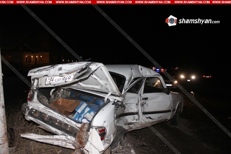 Երեկ՝ դեկտեմբերի 14-ին, խոշոր ավտովթար է տեղի ունեցել Կոտայքի մարզում: Ժամը 19:40-ի սահմաններում Երևան-Սևան ավտոճանապարհի 27-րդ կմ հատվածում ГАЗ 3110 մակնիշի 34 UP 949 համարանիշի ավտոմեքենան դեպի Երևան ընթանալիս դուրս է եկել հանդիպակաց երթևեկելի գոտի և բախվել ВАЗ 2106 մակնիշի 35 PC 922 համարանիշի ավտոմեքենային: Ինչպես հայտնում է ֆոտոլրագրող Գագիկ Շամշյանը, վթարի հետևանքով 4 հոգի մարմնական վնասվածքներով տեղափոխվել են Չարենցավանի բժշկական կենտրոն: Դեպքի վայր են ժամանել Ճանապարհային Ոստիկանության 2-րդ սպայական գումարտակի 3-րդ վաշտի 1-ին դասակի աշխատակիցները՝ վաշտի հրամանատար Արթուր Պետրոսյանի և դասակի հրամանատար Հրանտ Գալստյանի գլխավորությամբ: Ժամանել է նաև նույն վաշտի հետաքննիչ Ավետիս Ավետիսյանը: Վթարի մասին ՃՈ 1-77 օպերատիվ կառավարման կենտրոնի պատասխանատու հերթապահ Երվանդ Ալեքսանյանը տեղեկությունը փոխանցել է Հայաստանի քննչական կոմիտեի Կոտայքի մարզային քննչական վարչության Աբովյանի քննչական բաժին, որտեղից ժամանել է քննչական խումբը: Տեղում քննչական աշխատանքները ղեկավարում է քննիչ Հովհաննես Վարդանյանը: Ոստիկանությունն ու քննչական բաժինը պարզում են վարորդների և վիրավորների ինքնությունը: Ծանուցում. Ենթադրյալ հանցանքի մեջ կասկածվողը կամ մեղադրվողը համարվում է անմեղ, քանի դեռ նրա մեղավորությունն ապացուցված չէ ՀՀ քրեական դատավարության օրենսգրքով սահմանված կարգով` դատարանի` օրինական ուժի մեջ մտած դատավճռով: Լուսանկարները՝ Սմբատ Պետրոսյանի