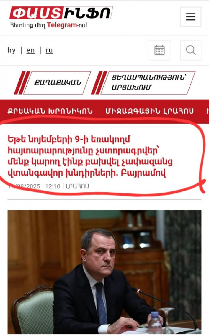 Բայրամովը շատ ճիշտ է... Նիկոլն ամեն ինչ արել է Ադրբեջանին օգնելու և այնպիսի փաստաթուղթ է ստորագրել, որ 100%֊ով գոհացնի միայն Բաքվին...