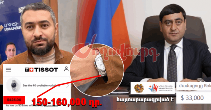 «Ժողովուրդ»-ի լրագրողը հարցազրույց էր ունեցել Շուկայի վերահսկողության տեսչական մարմնի ղեկավար Արմեն Կոտոլյանի հետ Վաղարշապատի ՏԻՄ ընտրությունների շրջանակում։ Մինչ Կոտոլյանը գովում էր թիմին եւ արդեն համայնքապետ Արգիշտի Մեխակյանին, մեր աչքից չվրիպեց նրա ժամացույցը։