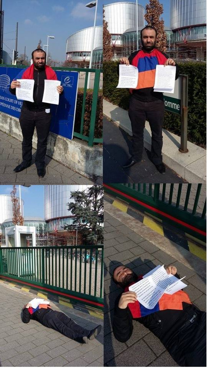 Ստրասբուրգում բնակվող, մարտի 1-ի գործով նախկին քաղբանտարկյալ Գևորգ Մանուկյանը, երեկ, աննախադեպ ակցիա է իրականացրել: Նա շուրջ մեկ ժամ պառկել է Մարդու իրավունքների եվրոպական դատարանի մոտ, ապա ակցիա է արել նաև Եվրոպական խորհրդի շենքի մոտ: «Լրացավ 8-ը տարին, երբ մարտի 1-ին 10 զոհ ու բազմաթիվ խեղված ճակատագրեր ունեցանք: Այս տարիների ընթացքում սայլը տեղից չշարժվեց: Դիմում եմ միջազգային մաշտաբով պատկան մարմիններին, ուզում եմ ասել, որ մարտի 1-ի գործը փակված չէ ու ես այս օտար երկրում փաստում եմ, որ մեր երկիրը տաճար է, ուր սուրբ է ամեն քարը»,-Հայելի.am-ի թղթակցի հետ զրույցում ասաց Մանուկյանը, ում հոգին չի բուժվում արդեն ութը տարի, իսկ մեկ աչքը կուրացել է մարտի 1-ին: Նախկին քաղբանտարկյալը, ով մշտապես պայքարում է մարդու իրավունքների պաշտպանության համար նշում է, որ իր ակցիան հատկապես ԱԺ փոխնախագահ Հերմինե Նաղդալյանին էր ուղղված.«Վարդգես Գասպարիի առնչությամբ` Հերմինե Նաղդալյանը ասել է, որ եթե նման բաները (դատարանում կամ այլ հասարակական վայրերում պառկած բողոք արտահայտել)Եվրոպայում արվեր, ապա չգիտեմ, թե ինչ կանեին: Հիմա ես պառկել եմ Եվրոպայում ու ինձ ոչ մեկը չի ճնշում: Անգամ մոտենում էին ու խրախուսում»,-ընդծեց Գևորգ Մանուկյանը: Մանուկյանը տեղեկացրեց, որ իր հիմնական ակցիան «սամոզվանեց» քաղբանտարկյալ Գագիկ Ջհանգիրյանի դեմ է: «Ջհանգիրյանին ասում եմ, որ ինքը մարտի 1-ի քաղբանտարկյալ չէ: Նա բանտում եղել է, որովհետև դավաճանել էր իր թիմակիցներին»,-ասաց Մանուկյանը: Մանուկյանը նշում է, որ իր գործը Եվրոդատարան չի ուղարկվել ՀԱԿ-ի մեղքով: «Ես ավելի քան վստահ եմ, որ մարտի 1-ի հետ կապված միայն իմ գործը չէ, որ ՄԻԵԴ չի հասել: Ջհանգիրյանի գործը պետք է հասներ Եվրոդատարան»,-եզրափակեց Գևորգ Մանուկյանը: Աստղիկ Ավագյան