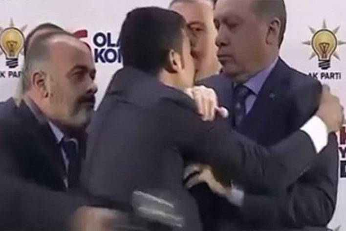 Թուրքիայում տղամարդը վազելով բեմ է բարձրացել երկրի նախագահ Ռեջեփ Թայիփ Էրդողանի ելույթի ժամանակ, որպեսզի գրկի նրան։ Այս մասին հայտնում է թուրքական Hurriyet պարբերականը՝ միջադեպից հրապարակելով տեսանյութ։