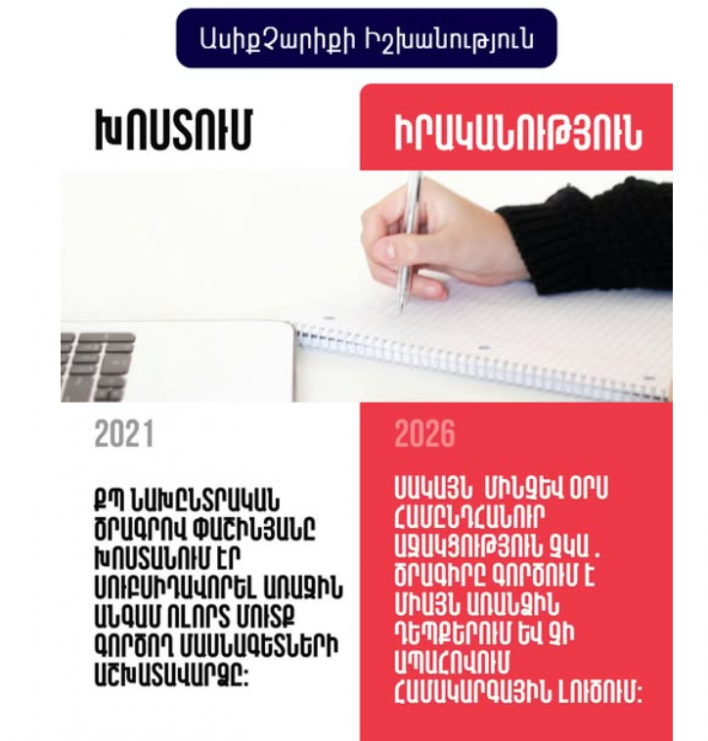 «Ապրելու երկիր» կուսակցության համահիմնադիր Մեսրոպ Առաքելյանը գրել է. «Վերջին տարիներին իշխանությունները բազմաթիվ խոստումներ են տվել սոցիալական, տնտեսական և քաղաքաշինական ոլորտներում։ Սակայն այդ խոստումների մեծ մասը մնացել է թղթի վրա։
