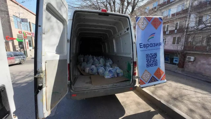 Լեռնային Ղարաբաղից տեղահանվածներին աջակցող մարդասիրական ակցիան իրականացնում է «Եվրասիա» ՀԿ–ն` «Ռուսաստանի մարդասիրական առաքելություն» ՀԿ–ի հետ համատեղ, «Ռոսսոտրուդնիչեստվոյի» աջակցությամբ։