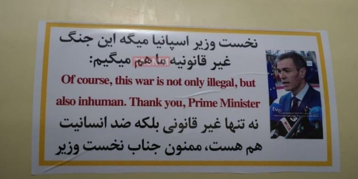 Հաղորդվում է նաև, որ Իրանը գործի է դրել Իսպանիայի վարչապետ Պեդրո Սանչեսի նկարով հրթիռներ։ Սանչեսն ավելի վաղ հայտարարել էր, որ իր երկիրը չի աջակցի այնպիսի գործողությունների, որոնք համարում է աշխարհի համար վնասակար և իր արժեքներին հակասող: