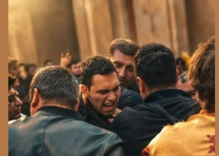 Մինչև իր ձեռքի հայտնի շարժումը՝ Դավիթի նկատմամբ ուժ է կիրառվել՝ «խնդրանք»-պահանջը չկատարելու համար։ Նրա ձեռքի շարժումն այդ կիրառված ուժի արձագանքն էր։